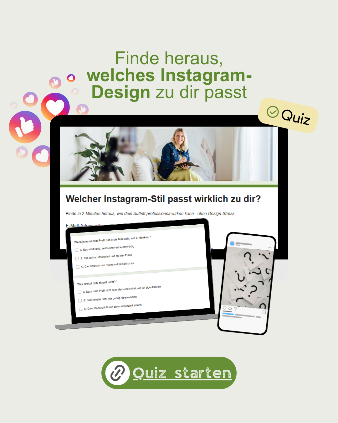 Jeder Instagram-Auftritt wirkt anders. Manche ruhig und souverän, andere klar strukturiert oder bewusst warm und persönlich. Genau dafür habe ich drei Stilpakete mit Karussell-Vorlagen für Instagram entwickelt und in diesem Quiz findest du heraus, welches davon wirklich zu dir und deiner Marke passt.